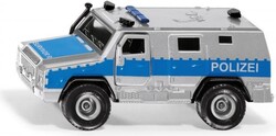 SIKU Super - policajné obrnené vozidlo Survivor. Policajné obrnené vozidlo Survivor R prepravuje špeciálne jednotky na miesto nasadenia. V obrnenom vozidle vybavenom výzbrojou je priestor pre jedenásť osôb. Špeciálny ventilačný systém chráni cestujúcich pred vojnovými agentmi. Dvere vodiča, spolujazdca a zadné dvere je možné otvoriť.Mierka: 1:50.