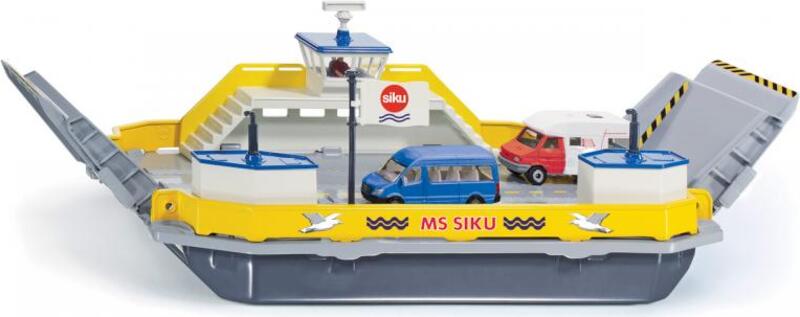 Designově atraktivní loď Siku pomůže kdekoliv kde je potřeba přepravit auta přes vodu. Na výsuvné rampy lze umístit až 6 aut nebo 2 kamiony. Plave na vodě nebo jezdí po podlaze. Měřítko: 1:50 Věk: 3+