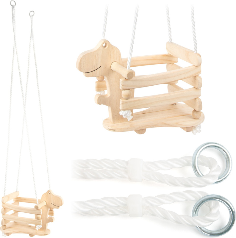 Táto hojdačka pre batoľatá z neošetreného masívneho dreva poteší malých fanúšikov dinosaurov. Flexibilné zabezpečenie dieťaťa zo všetkých strán, ktoré siaha až do výšky hrudníka, rovnako ako dve rukoväte, zaisťujú mladým „dinosaurovým jazdcom“ veľkú podporu, istotu a bezpečnosť.