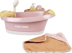 Vanička s opierkou hlavy pre bábiky Smoby Baby Nurse s elektronickou sprchou a bublinkovou funkciou so svetlom. Z automatickej sprchovej hlavice vytečie skutočná voda jednoduchým stlačením tlačidla.