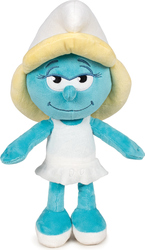 Plyšová modrá kamarátka v bielej čiapke a šatočkách.