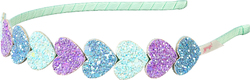 Štýlová čelenka pre malé slečny od 3 rokov, zdobená trblietavými srdiečkami v odtieňoch modrej.