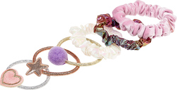 Tri gumičky sú klasické s ozdobou a tri látkové. Veselo ozdobia cop, vrkoč alebo drdol a dodajú účesu hravý vzhľad. Jemné k detským vláskom, vhodné na každodenné nosenie i slávnostné príležitosti.