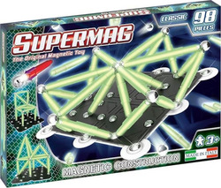 Supermag Classic Glow 98 je rozsiahly magnetický set, ktorého diely (magnetické tyčinky, oceľové guľôčky, platne a krúžky) sú vyrobené z fosforeskujúceho materiálu, čo umožňuje hotovým, stabilným konštrukciám svietiť v tme a dodávať hre nový, magický rozmer. Vďaka veľkému počtu dielov a prítomnosti patentovaných stabilizačných prvkov Classic je set ideálny pre komplexné 3D projekty, ktoré si vyžadujú vysokú pevnosť a detailné prevedenie, pričom zaručuje, že modely zostanú pevné aj pri prenášaní.