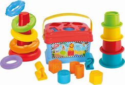 Súprava pre najmenších obsahuje box na vkladanie, pyramídu z krúžkov a pyramídu z téglikov.