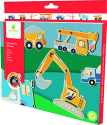 3 dosky s ilustráciami (20 x 14 cm), 12 očíslovaných farieb, 1 štetec, 3 háčiky na zavesenie hotových obrázkov, návod s predlohami.