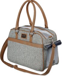 Elegantná látková taška zdobená koženkou s penovou výplňou a vreckom.
