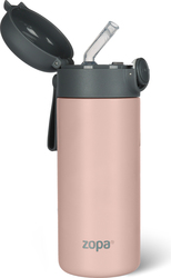 Termoska na tekutiny so slamkou a silikónovým držiakom 350 ml, Candy pink