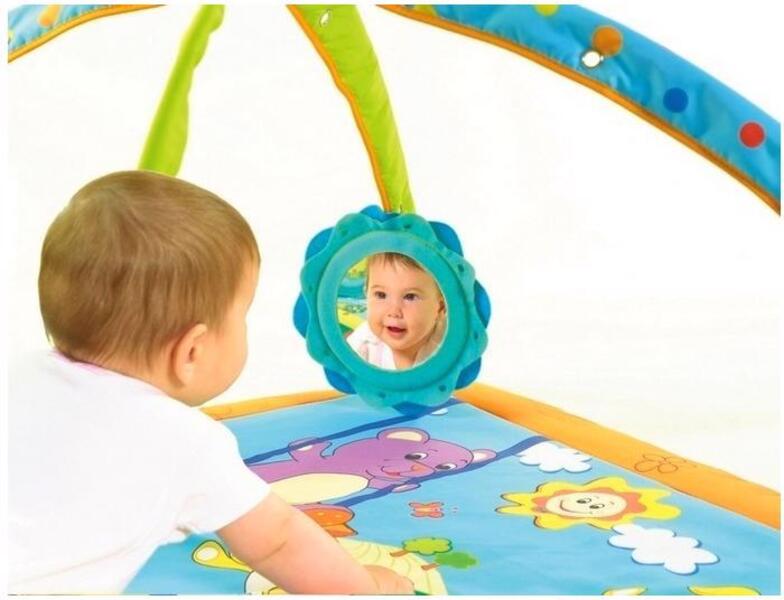- Štyri závesné odnímateľné hračky a množstvo ďalších aktivít priamo na deke stimuluje rôzne zmysly dieťaťa.