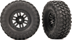 Kompletné univerzálne kolesá. 1.0" disky twin spoke s pneu Canyon Trail (2), vhodné pre modely TRX-4M. Unášač je šesťhran 7 mm.