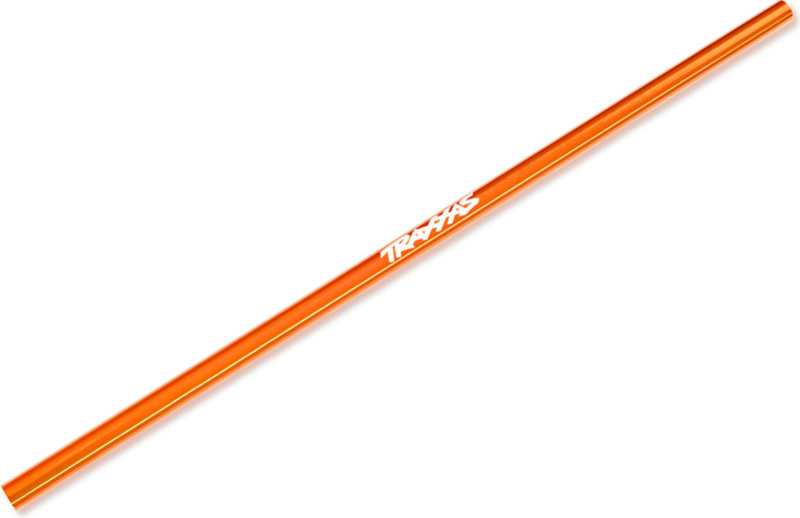 Náhradný diel pre RC model auta Traxxas Ford Raptor R 4WD - hriadeľ centrálny hliníkový oranžový Z pevnostného hliníka 6061-T6, oranžovo eloxovaný, laserom vyryté logo Traxxas. Dĺžka 274 mm.