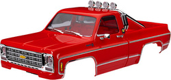 Traxxas karoséria Chevrolet K10 1979 červená, pre RC model auta TRX-4M s dlhším rázvorom 162 mm (High Trail). Bez-sponková karoséria v mierke 1:18 z ABS, kompletné, vrátane čírych okien, prednej mriežky, bočných zrkadiel kľučiek dverí a ďalšie. Vyžaduje predný a zadný nárazník TRA9835.