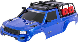 Traxxas karoséria TRX-4 Šport modrá. Kompletná nafarbená karoséria, vrátane mriežky chladiča, zrkadiel, kľučiek dverí, stierača, expedičného strešného nosiča as bezsponkovým systémom uchytenia. Určené na montáž na #8080X.