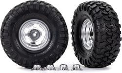 Kompletné univerzálne kolesá. Polomatne chrómované disky s pneumatikami Canyon Trail pre modely TRX-4/6 (2 ks v balení). Rozmer disku o2.2". Celkový rozmer o5,3". Unášač je šesťhran 12 mm. Určené pre modely s hriadeľom TRA8255A.