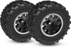 Kompletné predné kolesá pre RC auto Traxxas Mini Maxx. Disk čierny saténový s pneumatikami Sledgehammer s penovou vložkou. Priemer disku 2.1" (vonkajší) /2.6" (vnútorný).