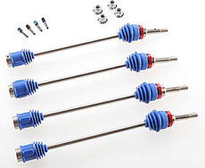 Charakteristika: Tuningové homokinetické oceľové poloosy CV (Constant Velocity) prednej aj zadnej nápravy pre autá Traxxas E-Maxx, E-Revo, Nitro T-Maxx, Nitro Revo. CV znamená, že kĺb je tzv. homokinetický alebo rovnobežný . Homokinetický kĺb umožňuje prenos otáčok medzi hriadeľmi v rôznom uhle pri zachovaní konštantnej uhlovej rýchlosti. To znamená, že pokiaľ má motor konštantnú uhlovú rýchlosť, koleso má tiež konštantnú uhlovú rýchlosť. Preto sa homokinetické kĺby používajú v automobilových poloosách. Štandardné krížové kĺby všeobecne homokinetické nie sú. CV poloosi výrazne zlepšujú jazdné vlastnosti a znižujú namáhanie pohonnej sústavy.