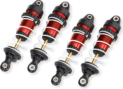 Vysoko kvalitné hliníkové tlmiče GTR Long (dlhý) - sada 4ks. Zostavené s pružinami. Červeno eloxované, potiahnuté PTFE pre extra hladký chod a piestnice s TiN - nitridom titánu pre vysokú odolnosť a tvrdosť povrchu.