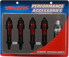 Traxxas tlmič GTR hliníkový červený (2ks predenie, 2ks zadný) so silikónovým olejom. Konštrukcia GTR má hliníkové telo so závitom a krúžkom na presné nastavenie predpätia. Chrómované hriadele majú vysokú životnosť a hladký chod. Vnútri tlmiče sú tlmiace gumené telesá kompenzujúce objem, aby sa zabezpečilo dokonalé tlmenie v celom rozsahu. Tlmiče GTR sú odporúčané pre vnútro auta Traxxas, pre XO-1, E-Revo® VXL.