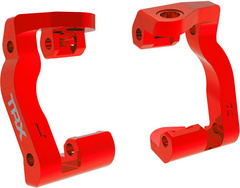 Tuningový diel pre RC modely áut Traxxas Mini Maxx / Mini XRT: zavesenie náboja hliníkové červené (pár). Z pevného kvalitného hliníka 6061-T6, chránené eloxovaným povrchom.