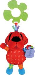 Mačkací a pískací psík je vybavený praktickým úchytom na kočík. Je možné prať ho v práčke pri teplote 30 stupňov. Samotný úchyt je potom možné použiť aj ako hryzátko.