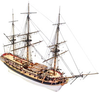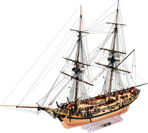 Charakteristika: Stavebnica modelu lode Vanguard Models HM Cutter Alert 1777 v mierke 1:64. Stavba prevažne z dreva s drobnými doplnkami, laserom rezané diely, mosadzné kovanie. Výhodou stavebnice je detailný obrázkový manuál kroku pre kroku. Maketa Alert zachytáva loď po jej prestavbe s dvanástimi šesťlibernými delami a kompletnou sadou dvanástich otočných polliberných diel, čo dáva celkovú výzbroj dvadsaťštyri diel. Stavebnica modelu bola navrhnutá tak, aby bola čo najpresnejšia, ako v mierke, tak v detailoch. Na tento účel boli všetky kovania, trupu a paluby vyrobené a skonštruované na zákazku a neboli použité žiadne štandardné diely. Informácie o predlohe Alert bol postavený v Doveri Henrym Laddom a spustený 24. júna 1777, bola to najväčšia fregata Royal Navy. Pôvodne mal Alert desať štvorliberových lafetových diel a šesť až dvanásť pollibrových otočných diel. Loď bola jednou z pätnástich fregat postavených pre Royal Navy v rokoch 1777 až 1778. Menšie fregaty boli často vyrobené súkromnými lodenicami a potom odkúpené námorníctvom, ale Alert bola na vojenské účely postavená už od základu. Vo februári 1778 bol Alert zakotvený v Plymouthe kvôli generálnej oprave. Na trupe boli vykonané niektoré úpravy, desať štvorliberových lafetových diel bolo nahradených dvanástimi šesťlibernými delami, čím sa hmotnosť zvýšila o 30 %. Zbrane boli zmenené, pretože šesťliberové guľky boli ľahšie dostupné a samozrejme účinnejšie. Vďaka vylepšenej výzbroji bola posádka Alert navýšená zo šesťdesiatich na osemdesiat mužov. Prezbrojená fregata sa vrátila do služby pod vedením nového veliteľa, poručíka Williama Georgea Fairfaxa. V máji 1778 bol Fairfax povýšený na veliteľa a Alert bol preklasifikovaný na šalupu, aby splnil požiadavky admirality. 17. júna 1778 Alert spolu s fregatou Arethusa zazreli a stíhali francúzsku fregatu Belle Poule a ozbrojený remorkér Coureur. Posledný menovaný bol loďou Alert predstihnutý a kapituloval. 8. júla toho istého roku bol Alert prekvapený a unesený francúzskou fregatou Junon počas nezávislej operácie pri hľadaní nepriateľskej flotily. 15. decembra 1779 bol Alert stratený bez stopy. Obal s fotografiou hotového modelu Štýlová krabica s fotografiou hotového modelu je starostlivo, vkusne a kvalitne graficky vyvedená a obsahuje názov, technické údaje a merítko modelu. Čo nájdete v balení Po otvorení veka krabice nájdete drevené diely modelu z preglejky, sadu líšt, drobné súčasti uzavreté vo vrecúškach, sadu výkresov a manuál. Súprava výkresov Set obsahuje kompletnú sadu výkresovej dokumentácie modelu v mierke 1:1 s obrázkami jednotlivých detailov. Na výkrese sú v mierke nakreslené montážne zostavy, ich kompletizácia a to vrátane sťažňov a ráheň a spôsob viazania lanoviek. Viacjazyčný postup stavby rámcovo upravuje logické zostavenie jednotlivých komponentov. Vlastnosti Dvojité plaňkovanie z lipového a hruškového dreva Laserom rezané materiály z hruškového dreva, MDF, 0,8 mm preglejky pre spodné paluby a číre akrylátové sklo pre stojan 3 listy mosadzných fotoleptaných dielov Tyčky z lipového dreva pre sťažne a rahná Pláty z hruškového dreva 7 rôznych veľkostí lanoví v prírodnej aj čiernej farbe 12 čiernych a 12 polotočných diel zo živice 56 strán plnofarebného návodu veľkosti A3 Stojan pre hotový model Všetky ostatné materiály a príslušenstvo potrebné na zostavenie modelu Spodná paluba z 0,8 mm brezovej preglejky Laserom rezané pláty z hruškového dreva s dodatočnými leptanými detailmi na bokoch Plachta pre všetkých sťažňa Resinovaná kotva Laserom rytá doska z javorovej dyhy s podrobnejšou replikou dosiek a klincov História značky: Spoločnosť Vanguard Models založil známy konštruktér lodných modelov Chris Watton, ktorý sa u Amati zaslúžil o posledné konštruktéry modelov lodí, najmä v sérii Victory Models. Teraz, ako samostatný výrobca dôsledne realizuje svoju ambíciu o čo najlepšiu vernosť originálu a najvyššiu kvalitu materiálu. Nekompromisne zaviedol najmä výrobu dielov z ušľachtilého dreva s laserovým gravírovaním a je preňho tiež dôležité vyrobiť dokonalé konštrukčné návody so stovkami farebných fotografií tak, aby modely boli potešením zo stavby aj pre neskúsených modelárov. Vysoká kvalita materiálu a premyslená konštrukcia rozhodne stojí za to. Stavebná obtiažnosť 3 Modely makiet lodí pre pokročilých vyžadujú predchádzajúce skúsenosti so stavbou modelov a zvládnutej techniky jednotlivých technologických krokov, ako je lepenie, ohýbanie, farbenie, šitie plachiet, apod. Je nutné sa orientovať vo výkresovej dokumentácii, jednotlivé kroky a aj celý postup si rozvrhnúť. Prípadné detaily je nutné si naštudovať a treba počítať s tým, že stavba vyžaduje určitú mieru kreativity a samostatnosti, pretože návod sa nemusí zaoberať výrobou každého detailu. Modely sú obsiahle a detailné, ich dokončenie trvá dlho a vyžaduje veľa dokončovacích prác na dieloch. Obsah balenia: Balenie obsahuje laserom rezané drevené diely, planky, paluby, stožiare, doplnky z resinu, dekorácie, mosadzné kovanie, plachty. Podrobný obrázkový manuál EN a stavebné plány. Odporúčame dokúpiť: Súprava plachiet Pre zjednodušenie stavby a perfektný výsledok odporúčame kúpiť sadu hotových predšitých plachiet pre tento model. Na stavbu odporúčame kúpiť náradie, lepidlo a farby. Modelárske náradie a podložka Na stavbu modelov lodí je nutné vhodné náradie. Odporúčame výbornú sadu Modelcraft náradia pre lodných modelárov (sada 12ks), alebo Modelcraft náradie pre modelárov (sada 18ks). Ďalej odporúčame kúpu nylonových svoriek a nenahraditeľné modelárske špendlíky. Na úpravu, presné rezanie,