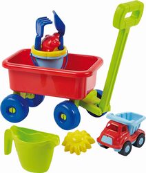 Súčasťou vedierko, sitko, hrabličky, lopatka, 2 formičky. Nechýba ani autíčko - sklápačka.