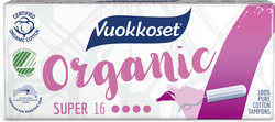 Tampóny zo 100 % organickej bavlny, biologicky rozložiteľné a bez aplikátora. Vhodné pri silnejšej menštruácii. Organické tampóny Vuokkoset neobsahujú viskózu, plasty, farbivá ani chlór, takže sú pre vás tou najbezpečnejšou voľbou!