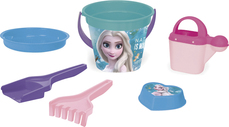 Sada na piesok skladajúci zo 6 dielikov v rôznych odtieňoch ružovej a fialovej a grafiky z obľúbenej rozprávky Frozen si obľúbia všetky milovníčky kreatívneho hrania v piesku. Jednotlivé prvky majú zaujímavú grafiku vyrobenú metódou IML. Vďaka tomu vydrží kontakt s vodou a slnkom. Súprava na piesok ponúka deťom možnosť kreatívneho hrania, a to ako v spoločnosti, tak aj bez nej. Stavebnica podnecuje predstavivosť najmenších. Dáva príležitosť spoznať a pozvať na spoločnú zábavu nových priateľov, čo pomôže dieťaťu rozvíjať jeho sociálne kompetencie, naučí správanie v skupine. Kreatívna hra v piesku stimuluje detskú predstavivosť, podporuje ich pohybovú aktivitu a manuálnu a motorickú koordináciu. Vyrobené z netoxických, bezpečných a odolných materiálov.
