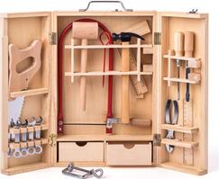 Kovové nářadí je reálnou kopií skutečného nářadí pro dospělé. Praktický dřevěný kufřík s panty, v němž je nářadí umístěno, je opatřen kovovými přezkami a uchem pro možnost přenášení. Uvnitř kufříku jsou instalovány západky a speciální otvory, které zajistí jednotlivé kusy nářadí tak, aby při manipulaci nevypadly. Sada obsahuje 26 ks nářadí. | Věk: 5+ | Rozměr otevřeného kufříku: 50x5,5x37 cm