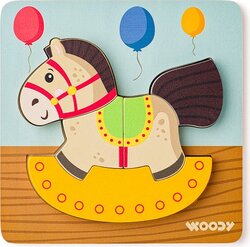 Vynikajúca hračka pre najmenších, ktorá spája zábavu a vzdelávanie. Tento farebný a atraktívny puzzle set obsahuje 3 dieliky s roztomilým hojdacím koňom, ktorý podnecuje detskú kreativitu a fantáziu. Vyrobené z kvalitného dreva, puzzle je bezpečné a odolné, čo zaručuje dlhú životnosť.